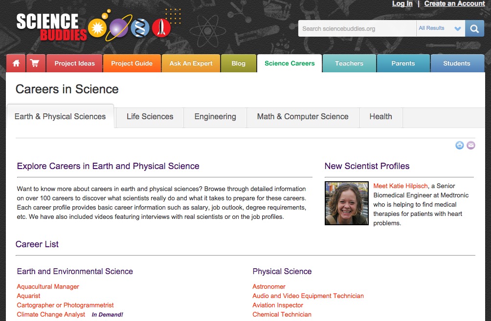 Click on the subject links on the left hand side of the website in the “What’s inside: Science” box to discover more information on scientific processes of life sciences, physical science or environmental science that will be relevant to the careers you are investigating.